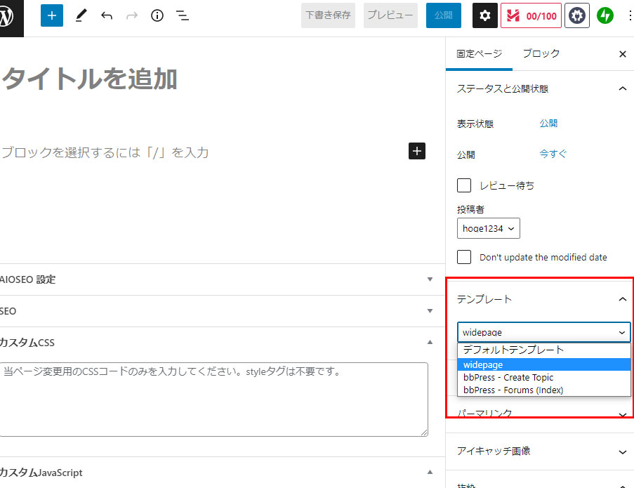 固定ページで独自のテンプレート追加