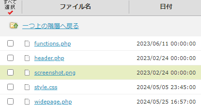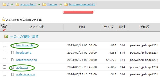 触るファイルはテーマ(下記の画像では筆者がDLしたテーマ「 businesspress 」です)の中にある、主にstyle.cssやheader.phpやfooter.phpなどのファイルです。