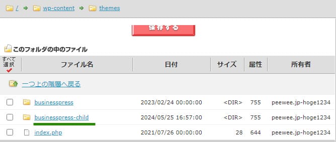 themesフォルダに新規フォルダを作成します。引き継ぐテーマ名に「_child」をつけ、新規フォルダを作成します。